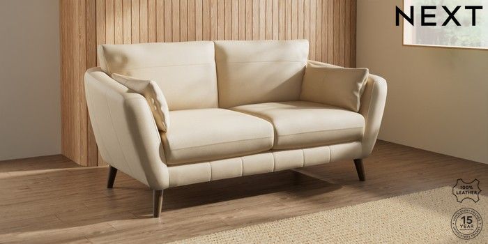 7.0.3 Buy Orlo Leather 3 Seater Small Sofa Turin Leather Light Natural Retro Tapered - Mid from the Next UK online shop Click here to use our accessible website