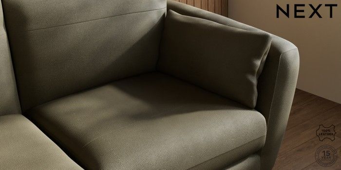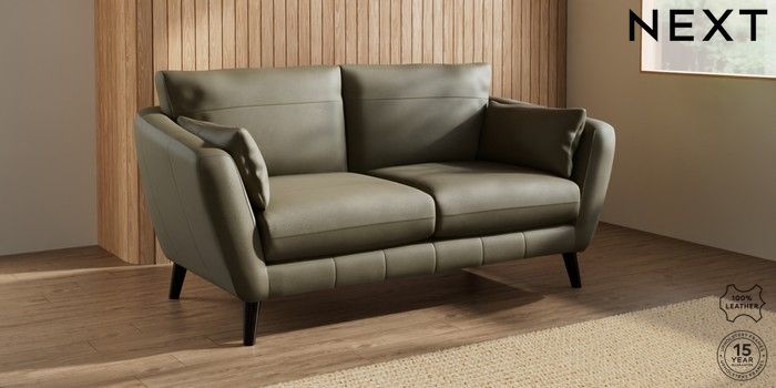 7.0.3 Buy Orlo Leather 3 Seater Small Sofa Turin Leather Moss Green Retro Tapered - Dark from the Next UK online shop Click here to use our accessible website