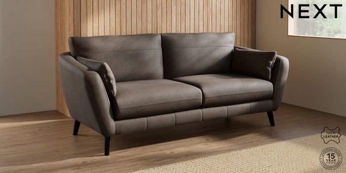 7.0.3 Buy Orlo Leather 3 Seater Sofa Antiqued Leather Dark Brown Retro Tapered - Dark from the Next UK online shop Click here to use our accessible website