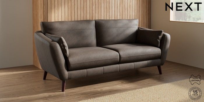 7.0.3 Buy Orlo Leather 3 Seater Sofa Antiqued Leather Dark Brown Retro Tapered - Dark Brown from the Next UK online shop Click here to use our accessible website