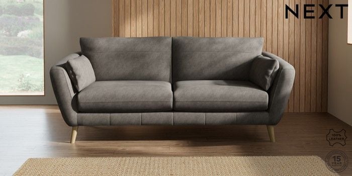 6.12.1 Buy Orlo Leather 3 Seater Sofa Antiqued Leather Grey Retro Tapered - Light from the Next UK online shop Click here to use our accessible website