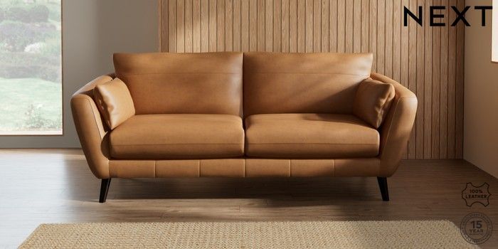 6.12.1 Buy Orlo Leather 3 Seater Sofa Antiqued Leather Light Tan Brown Retro Tapered - Dark from the Next UK online shop Click here to use our accessible website