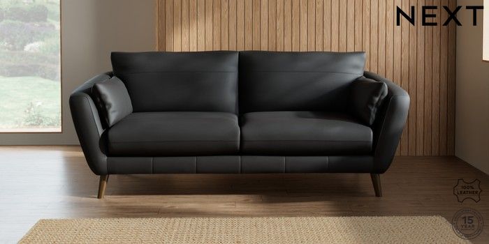 6.12.1 Buy Orlo Leather 3 Seater Sofa Columbia Black Retro Tapered - Mid from the Next UK online shop Click here to use our accessible website
