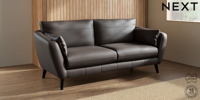 7.0.3 Buy Orlo Leather 3 Seater Sofa Columbia Dark Brown Retro Tapered - Dark from the Next UK online shop Click here to use our accessible website