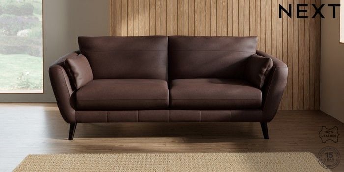 6.12.1 Buy Orlo Leather 3 Seater Sofa Rustic Leather Dark Brown Retro Tapered - Dark from the Next UK online shop Click here to use our accessible website