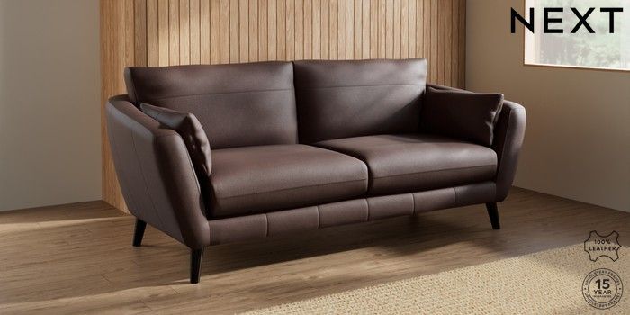 7.0.3 Buy Orlo Leather 3 Seater Sofa Rustic Leather Dark Brown Retro Tapered - Dark from the Next UK online shop Click here to use our accessible website