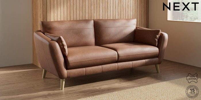 7.0.3 Buy Orlo Leather 3 Seater Sofa Rustic Leather Light Brown Retro Tapered - Light from the Next UK online shop Click here to use our accessible website