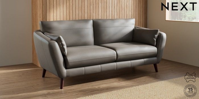 7.0.3 Buy Orlo Leather 3 Seater Sofa Turin Leather French Grey Retro Tapered - Dark Brown from the Next UK online shop Click here to use our accessible website