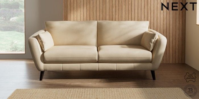 6.12.1 Buy Orlo Leather 3 Seater Sofa Turin Leather Light Natural Retro Tapered - Dark from the Next UK online shop Click here to use our accessible website