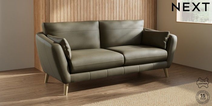 7.0.3 Buy Orlo Leather 3 Seater Sofa Turin Leather Moss Green Retro Tapered - Light from the Next UK online shop Click here to use our accessible website