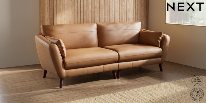 7.0.3 Buy Orlo Leather 4 Seater Sofa Antiqued Leather Light Tan Brown Retro Tapered - Dark Brown from the Next UK online shop Click here to use our accessible website