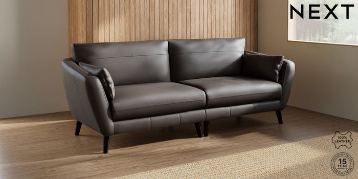 7.0.3 Buy Orlo Leather 4 Seater Sofa Columbia Dark Brown Retro Tapered - Dark from the Next UK online shop Click here to use our accessible website