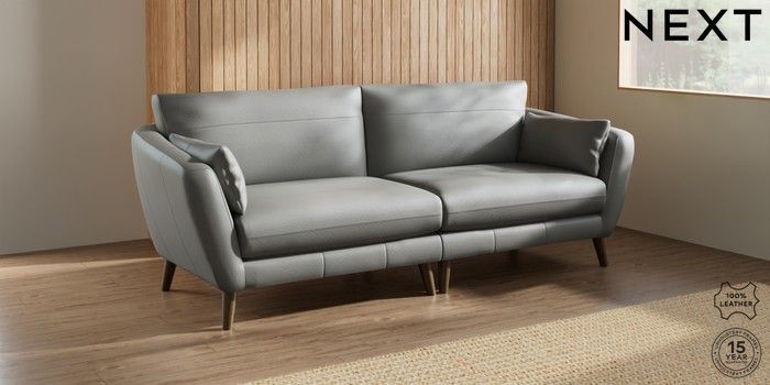 7.0.3 Buy Orlo Leather 4 Seater Sofa Columbia French Grey Retro Tapered - Mid from the Next UK online shop Click here to use our accessible website