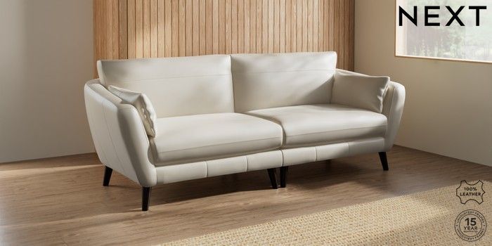 7.0.3 Buy Orlo Leather 4 Seater Sofa Columbia Silver Grey Retro Tapered - Dark from the Next UK online shop Click here to use our accessible website