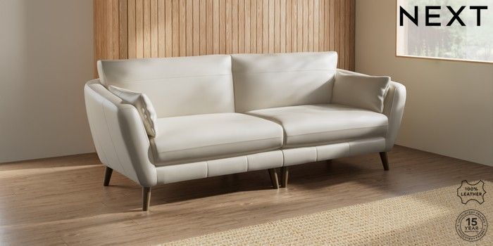 7.0.3 Buy Orlo Leather 4 Seater Sofa Columbia Silver Grey Retro Tapered - Mid from the Next UK online shop Click here to use our accessible website