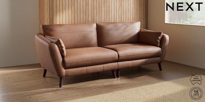 7.0.3 Buy Orlo Leather 4 Seater Sofa Rustic Leather Light Brown Retro Tapered - Dark Brown from the Next UK online shop Click here to use our accessible website