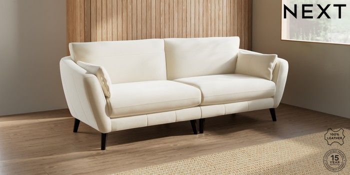 7.0.3 Buy Orlo Leather 4 Seater Sofa Turin Leather Cream Retro Tapered - Dark from the Next UK online shop Click here to use our accessible website