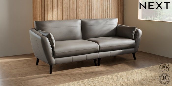 7.0.3 Buy Orlo Leather 4 Seater Sofa Turin Leather French Grey Retro Tapered - Dark from the Next UK online shop Click here to use our accessible website