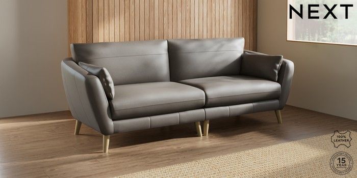 7.0.3 Buy Orlo Leather 4 Seater Sofa Turin Leather French Grey Retro Tapered - Light from the Next UK online shop Click here to use our accessible website