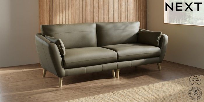 7.0.3 Buy Orlo Leather 4 Seater Sofa Turin Leather Moss Green Retro Tapered - Light from the Next UK online shop Click here to use our accessible website