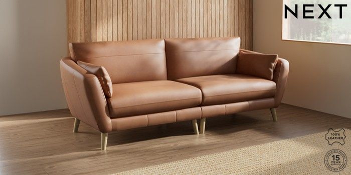 7.0.3 Buy Orlo Leather 4 Seater Sofa Turin Leather Tan Brown Retro Tapered - Light from the Next UK online shop Click here to use our accessible website