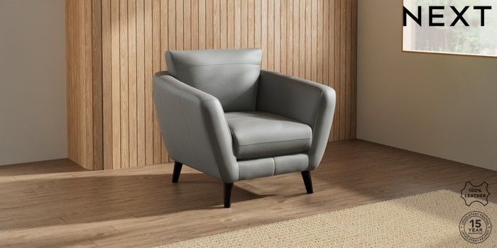 7.0.3 Buy Orlo Leather Armchair Columbia French Grey Retro Tapered - Dark from the Next UK online shop Click here to use our accessible website