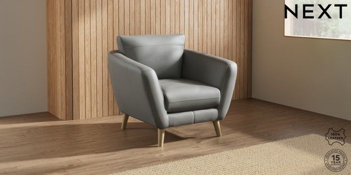 7.0.3 Buy Orlo Leather Armchair Columbia French Grey Retro Tapered - Light from the Next UK online shop Click here to use our accessible website