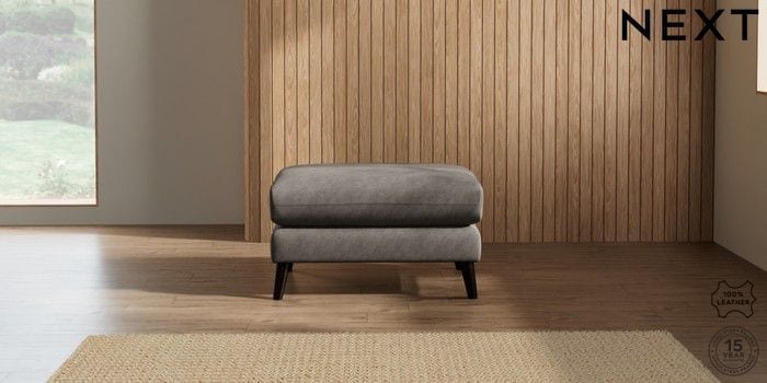 6.12.1 Buy Orlo Leather Footstool Antiqued Leather Grey Retro Tapered - Dark from the Next UK online shop Click here to use our accessible website
