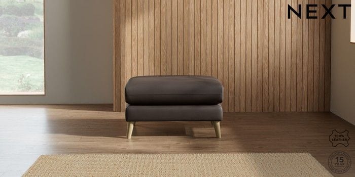 6.12.1 Buy Orlo Leather Footstool Columbia Dark Brown Retro Tapered - Light from the Next UK online shop Click here to use our accessible website