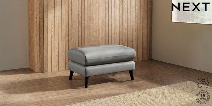7.0.3 Buy Orlo Leather Footstool Columbia French Grey Retro Tapered - Dark from the Next UK online shop Click here to use our accessible website