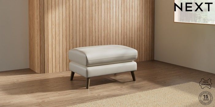 7.0.3 Buy Orlo Leather Footstool Columbia Silver Grey Retro Tapered - Mid from the Next UK online shop Click here to use our accessible website