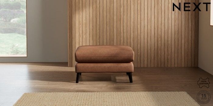 6.12.1 Buy Orlo Leather Footstool Rustic Leather Light Brown Retro Tapered - Dark from the Next UK online shop Click here to use our accessible website