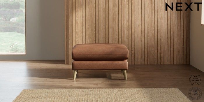 6.12.1 Buy Orlo Leather Footstool Rustic Leather Light Brown Retro Tapered - Light from the Next UK online shop Click here to use our accessible website