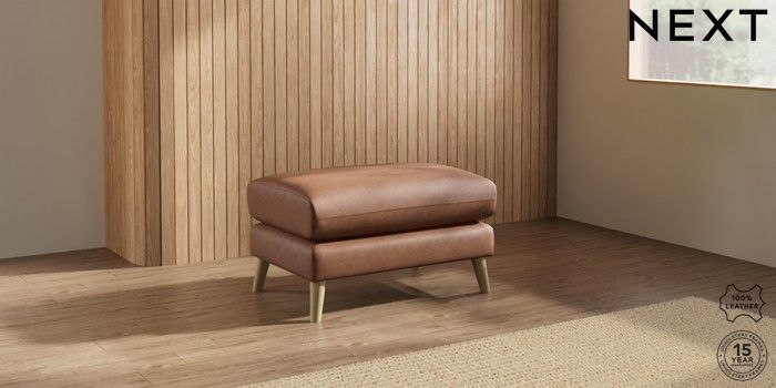 7.0.3 Buy Orlo Leather Footstool Rustic Leather Light Brown Retro Tapered - Light from the Next UK online shop Click here to use our accessible website