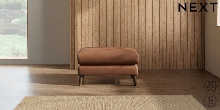 6.12.1 Buy Orlo Leather Footstool Rustic Leather Light Brown Retro Tapered - Mid from the Next UK online shop Click here to use our accessible website
