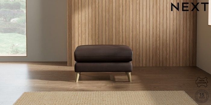 6.12.1 Buy Orlo Leather Footstool Turin Leather Dark Brown Retro Tapered - Light from the Next UK online shop Click here to use our accessible website