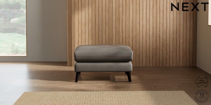 6.12.1 Buy Orlo Leather Footstool Turin Leather French Grey Retro Tapered - Dark from the Next UK online shop Click here to use our accessible website