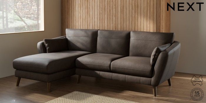 6.12.1 Buy Orlo Leather Medium Sofa Chaise - Left Hand Antiqued Leather Dark Brown Retro Tapered - Mid from the Next UK online shop Click here to use our accessible website