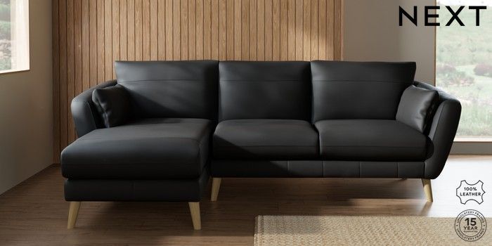 7.0.3 Buy Orlo Leather Medium Sofa Chaise - Left Hand Columbia Black Retro Tapered - Light from the Next UK online shop Click here to use our accessible website