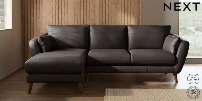 7.0.3 Buy Orlo Leather Medium Sofa Chaise - Left Hand Columbia Dark Brown Retro Tapered - Mid from the Next UK online shop Click here to use our accessible website