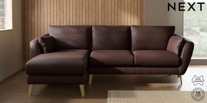 7.0.3 Buy Orlo Leather Medium Sofa Chaise - Left Hand Rustic Leather Dark Brown Retro Tapered - Light from the Next UK online shop Click here to use our accessible website