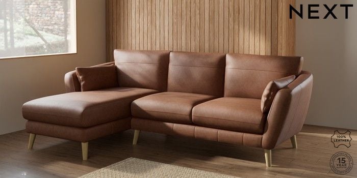6.12.1 Buy Orlo Leather Medium Sofa Chaise - Left Hand Rustic Leather Light Brown Retro Tapered - Light from the Next UK online shop Click here to use our accessible website