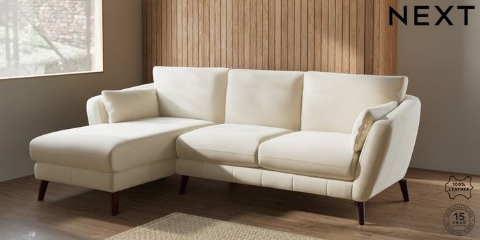 6.12.1 Buy Orlo Leather Medium Sofa Chaise - Left Hand Turin Leather Cream Retro Tapered - Dark Brown from the Next UK online shop Click here to use our accessible website