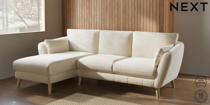 6.12.1 Buy Orlo Leather Medium Sofa Chaise - Left Hand Turin Leather Cream Retro Tapered - Light from the Next UK online shop Click here to use our accessible website