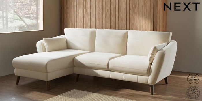 6.12.1 Buy Orlo Leather Medium Sofa Chaise - Left Hand Turin Leather Cream Retro Tapered - Mid from the Next UK online shop Click here to use our accessible website