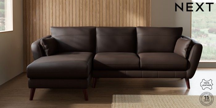 7.0.3 Buy Orlo Leather Medium Sofa Chaise - Left Hand Turin Leather Dark Brown Retro Tapered - Dark Brown from the Next UK online shop Click here to use our accessible website
