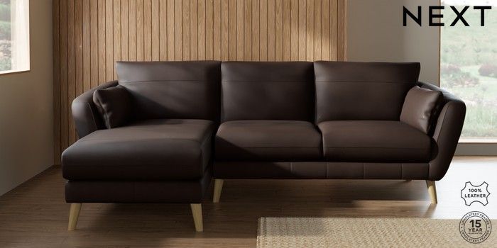7.0.3 Buy Orlo Leather Medium Sofa Chaise - Left Hand Turin Leather Dark Brown Retro Tapered - Light from the Next UK online shop Click here to use our accessible website