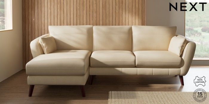7.0.3 Buy Orlo Leather Medium Sofa Chaise - Left Hand Turin Leather Light Natural Retro Tapered - Dark Brown from the Next UK online shop Click here to use our accessible website
