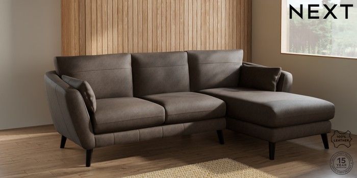 6.12.1 Buy Orlo Leather Medium Sofa Chaise - Right Hand Antiqued Leather Dark Brown Retro Tapered - Dark from the Next UK online shop Click here to use our accessible website