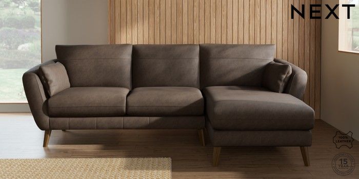 7.0.3 Buy Orlo Leather Medium Sofa Chaise - Right Hand Antiqued Leather Dark Brown Retro Tapered - Mid from the Next UK online shop Click here to use our accessible website